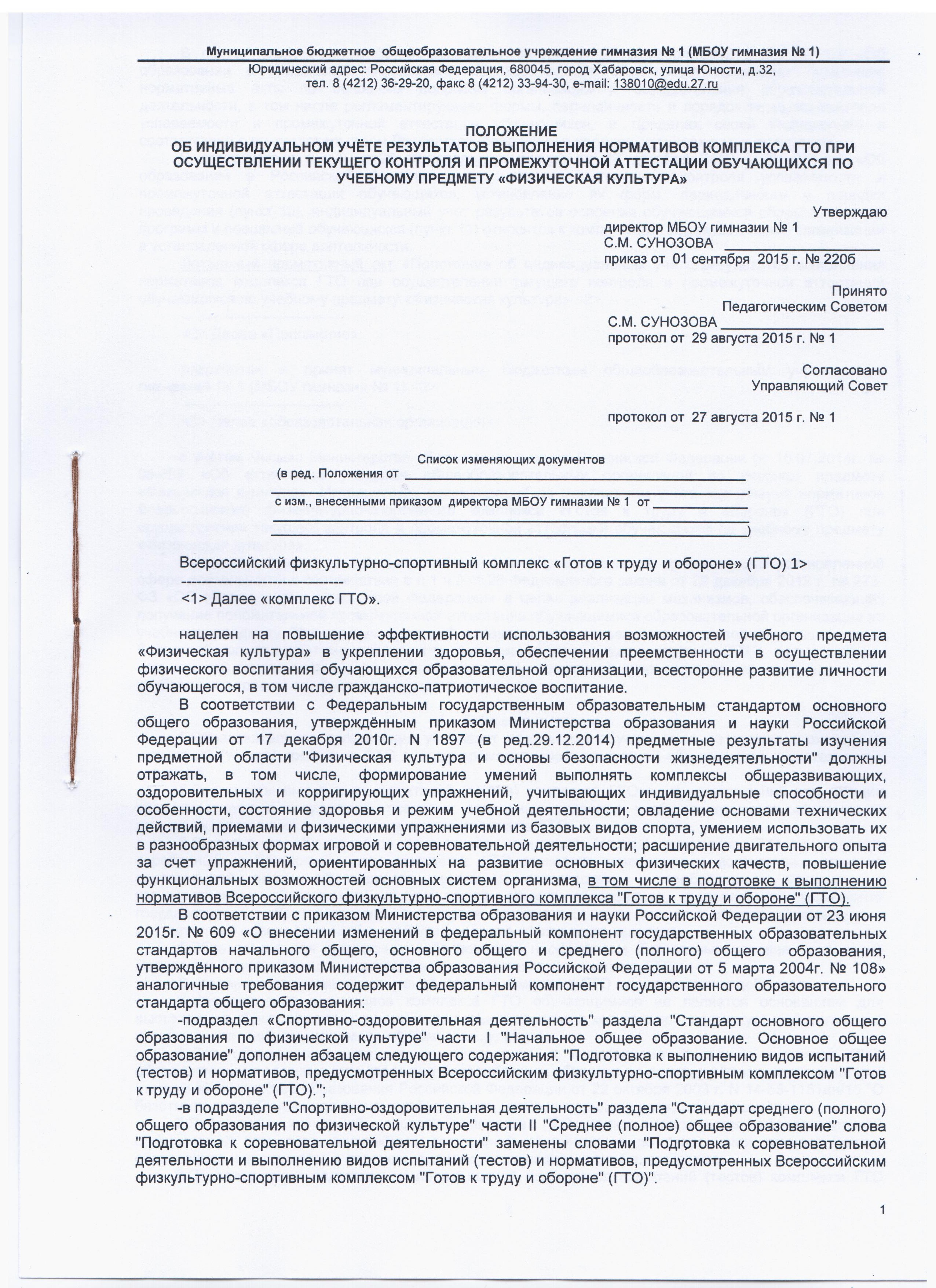 Программа проведения Дня ГТО 06.02.2016 в МБОУ гимназия № 1